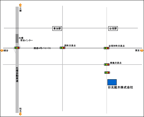 ***アクセス*** 外環自動車道草加インターを降りてすぐの国道4号線バイパスを東京方面へ 約3Km4号線を走ると谷塚仲町の交差点(目印はトステムビバ店)を右折 柳島の交差点(目印はコンビニのファミリーマート)を過ぎて約300mで 日光銘木株式会社本社ビル(3F建て)があります。 ご来店の際は事前にご連絡を下さい。 Web担当の柳井(やない)がお約束時間にお待ちしております。 |